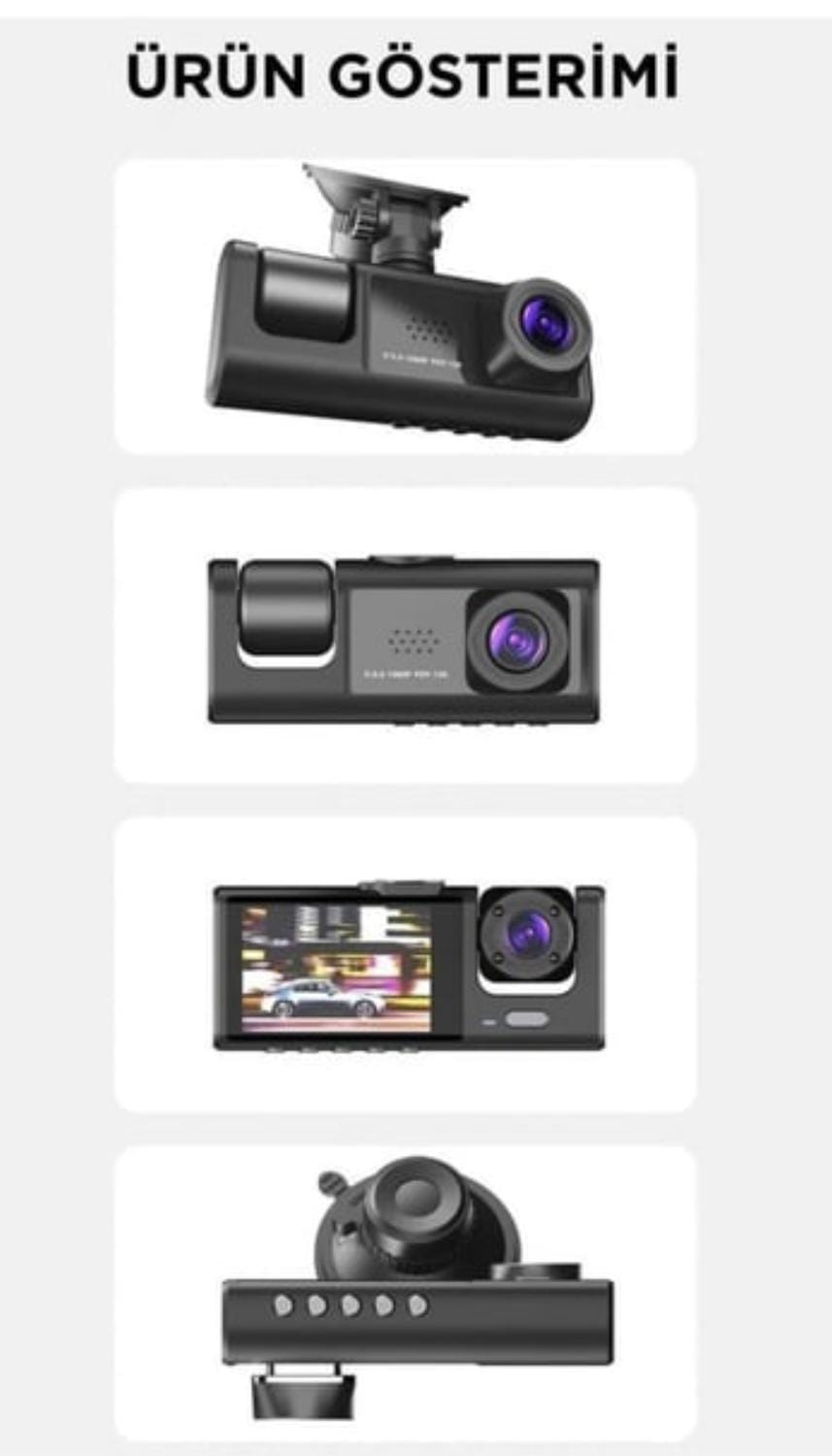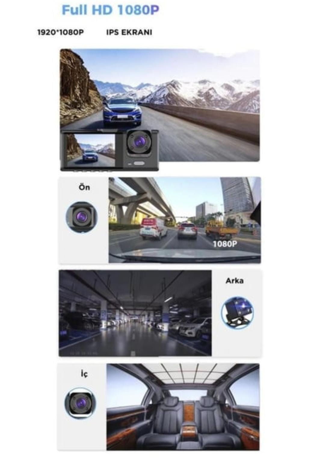 1-01AXO Q6 3 CAMERA 1080P LCD TÜRKÇE DİL PAKETİ ÇAKMAKLIK + KORUMA USB