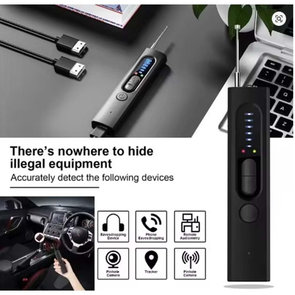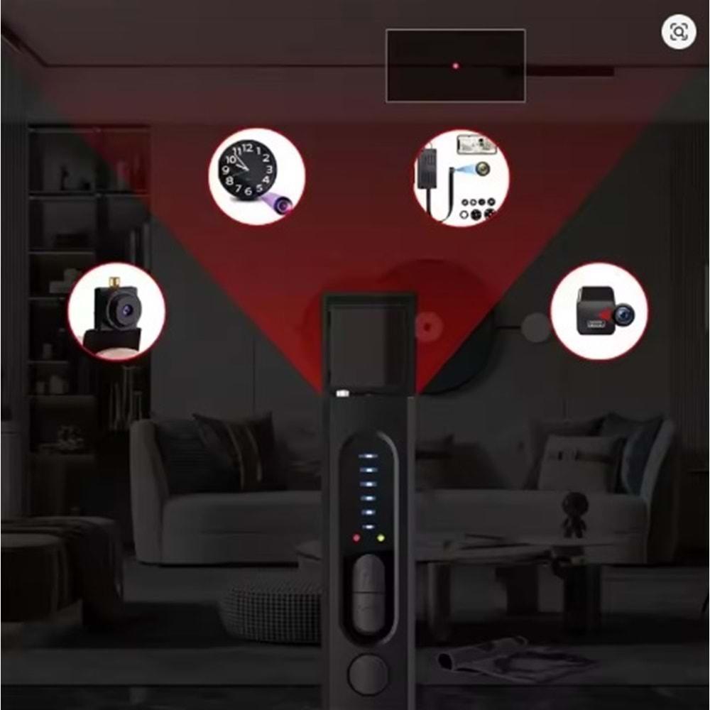 Q7 1-1 KAMERA SİNYAL DEDÖKTÖRÜ BÖCEK BULUCU ORTAM DİNLEME ENGELLEME SESLİ GÖRSEL LEDLİ İKAZ