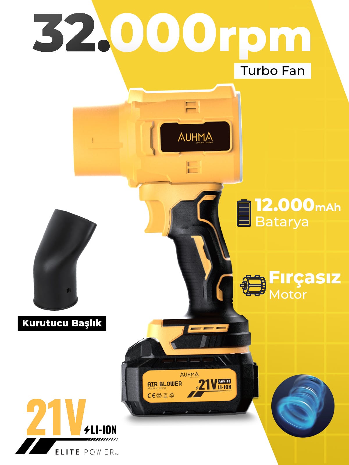 ARAÇ KURUTMA TOZ İTME ŞARJLI TURBO 32,000rpm 12000 MaH 21V BATARYA Li-İON PİL ARAÇ KURUTMA TOZ İTME