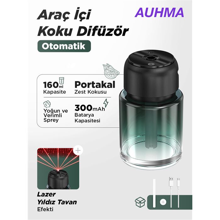 Auhma AF-01 Premium Otomatik Araç İçi Koku Difüzör – Lazer Yıldız Tavan – Cologne + PARFÜM