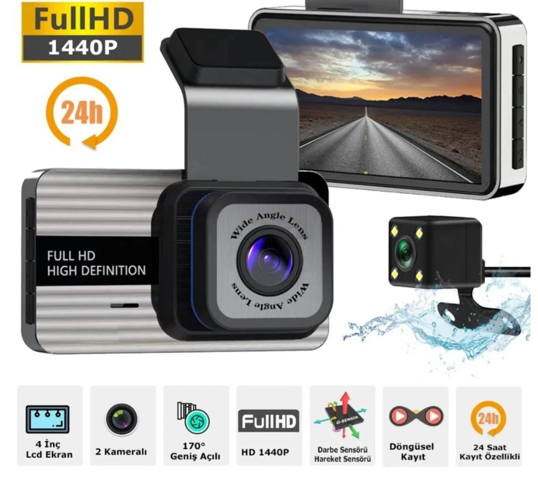 Dahili Ekrana Sahip 1440P Araç Kamerası Ve Geri Görüş Kamerası Seti