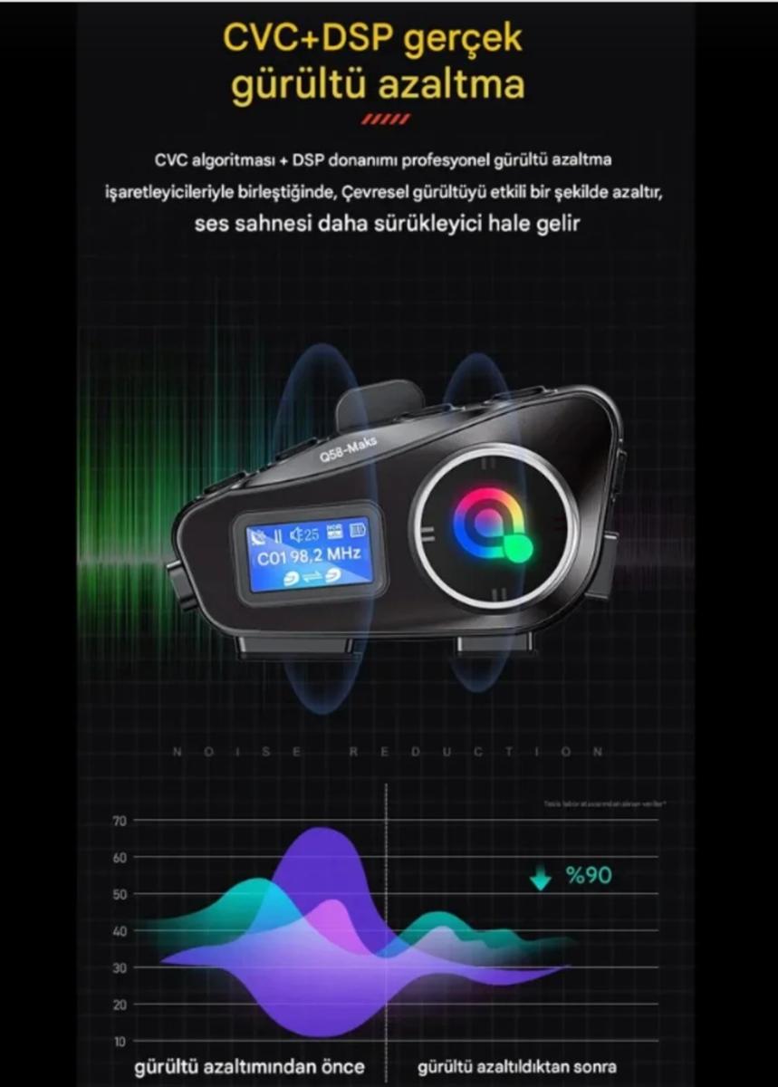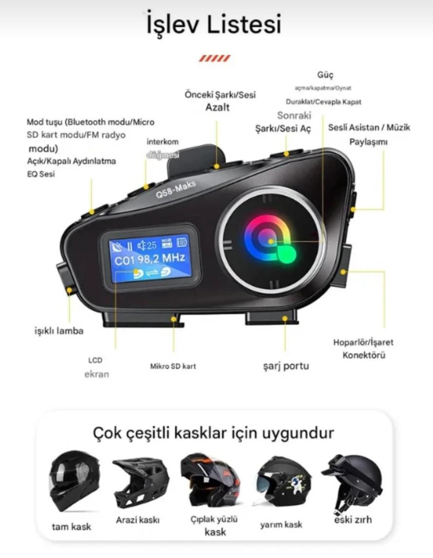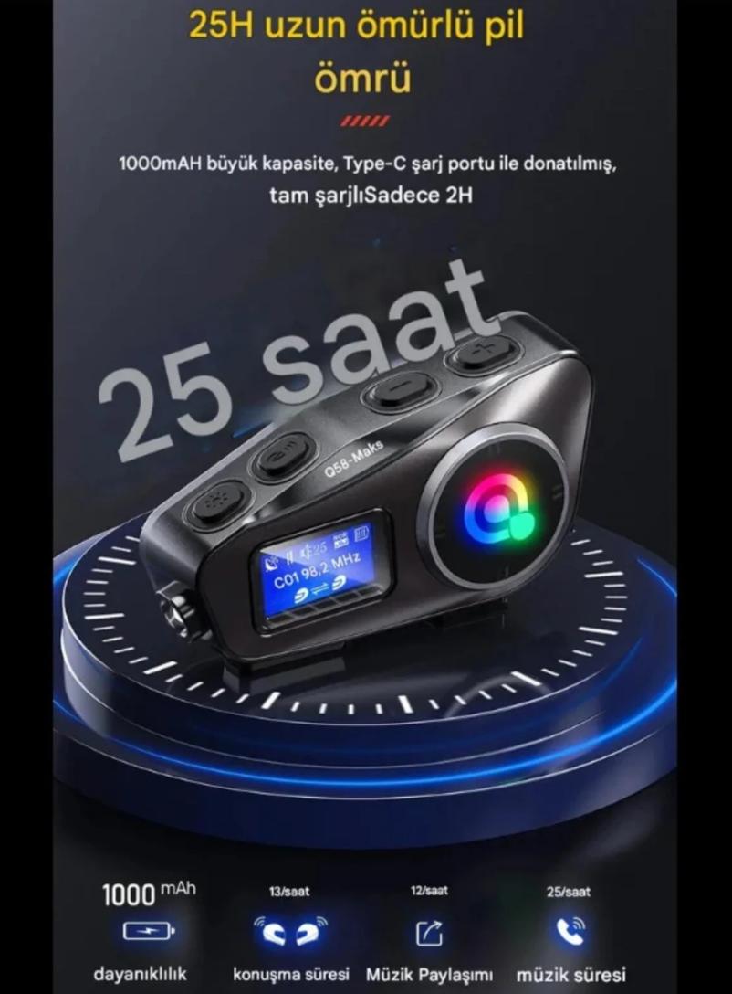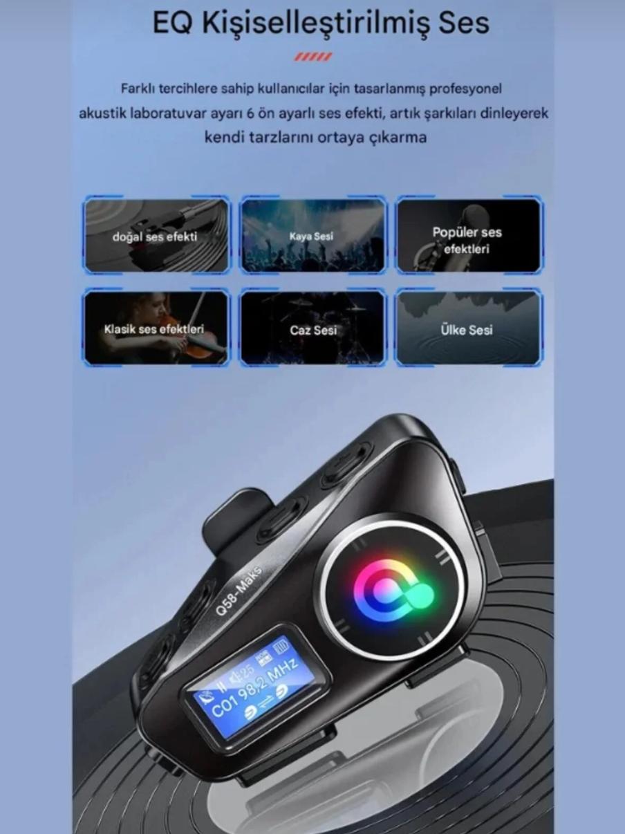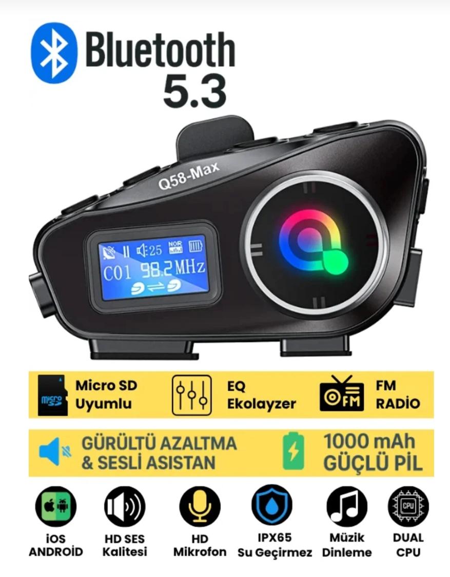 Q58 Max İnterkom Motosiklet Kask Kulaklık – Bluetooth 5.3 | FM Radyo | SD Kart | EQ Destekli
