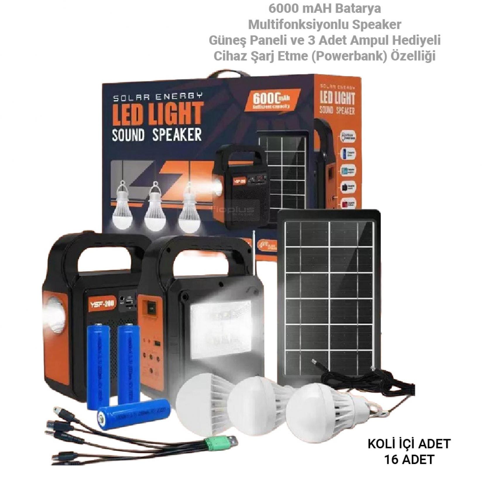 SOLAR PANELLİ GÜN VE GÜN IŞIĞI DOLUM.ANA GÖVDE ÜZERİ ÇİFT FENER EXTRA 3 AMPÜL AYDINLATMA RADYO MP3 USB SARZ BLOUTOOTH BAĞLANTILI